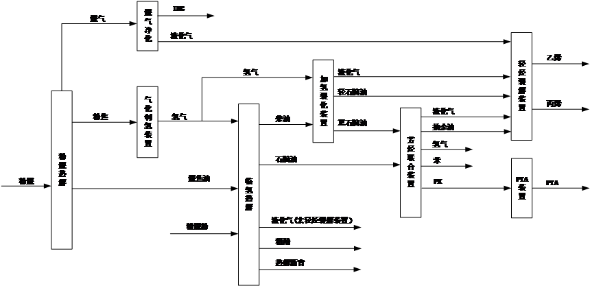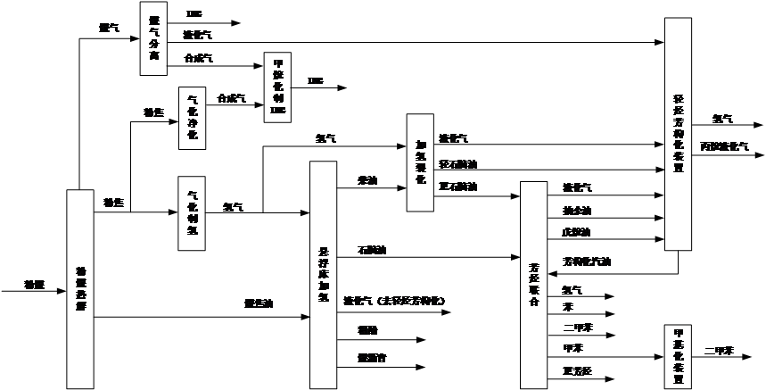 規(guī)劃以煤炭資源為基礎(chǔ),將煤化工領(lǐng)域的粉煤熱解、焦油加氫、煤氣凈化以及石化領(lǐng)域的加氫裂化、芳烴聯(lián)合、輕烴芳構(gòu)化等生產(chǎn)技術(shù)進(jìn)行耦合,實(shí)現(xiàn)煤炭分質(zhì)利用制芳烴,完成煤炭的分質(zhì)、清潔、高效轉(zhuǎn)化,減少了對石油原料的依賴性,實(shí)現(xiàn)了煤代原油大批量生產(chǎn)芳烴的可能性。