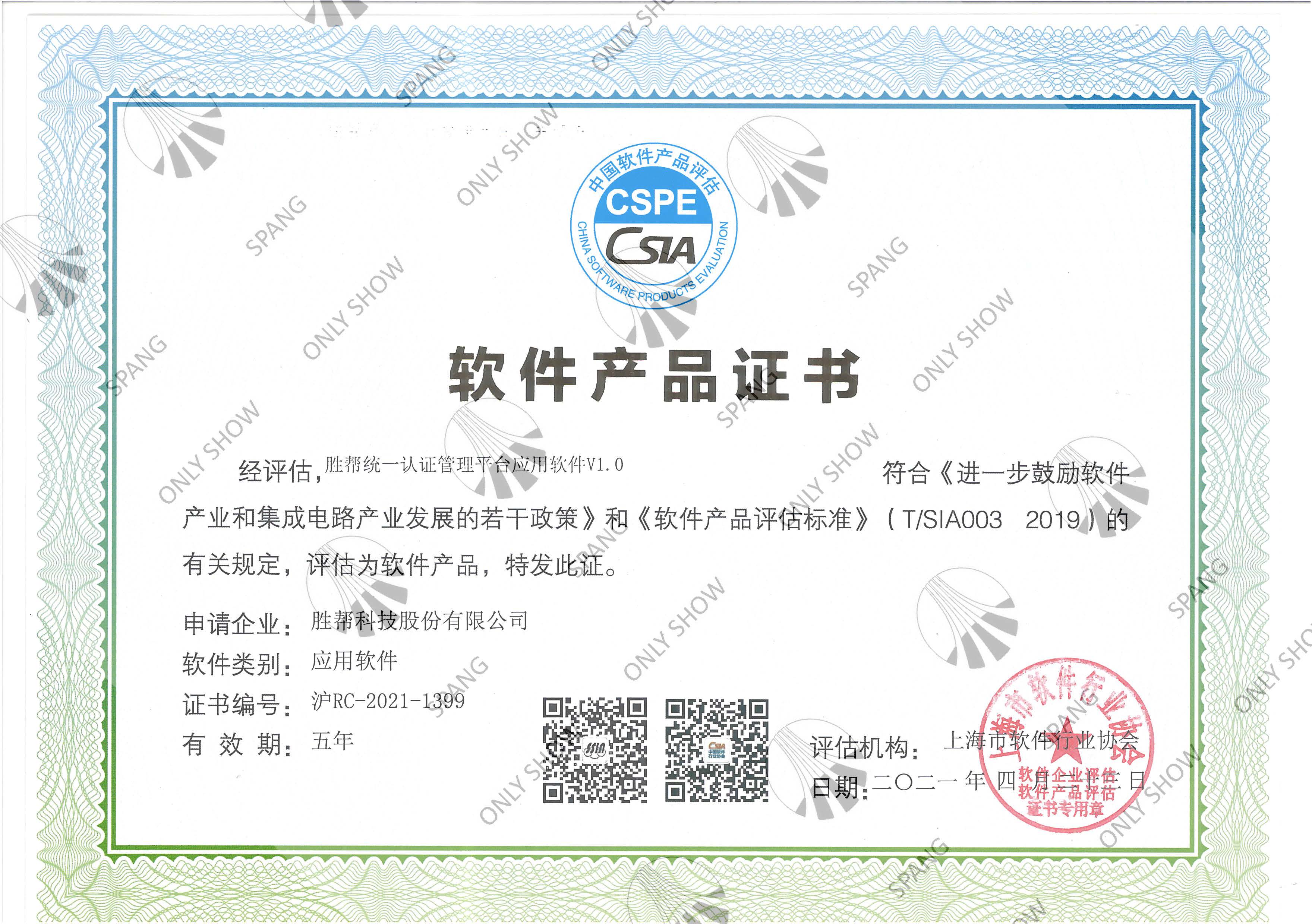 統(tǒng)一認(rèn)證管理平臺(tái)應(yīng)用軟件產(chǎn)品證書