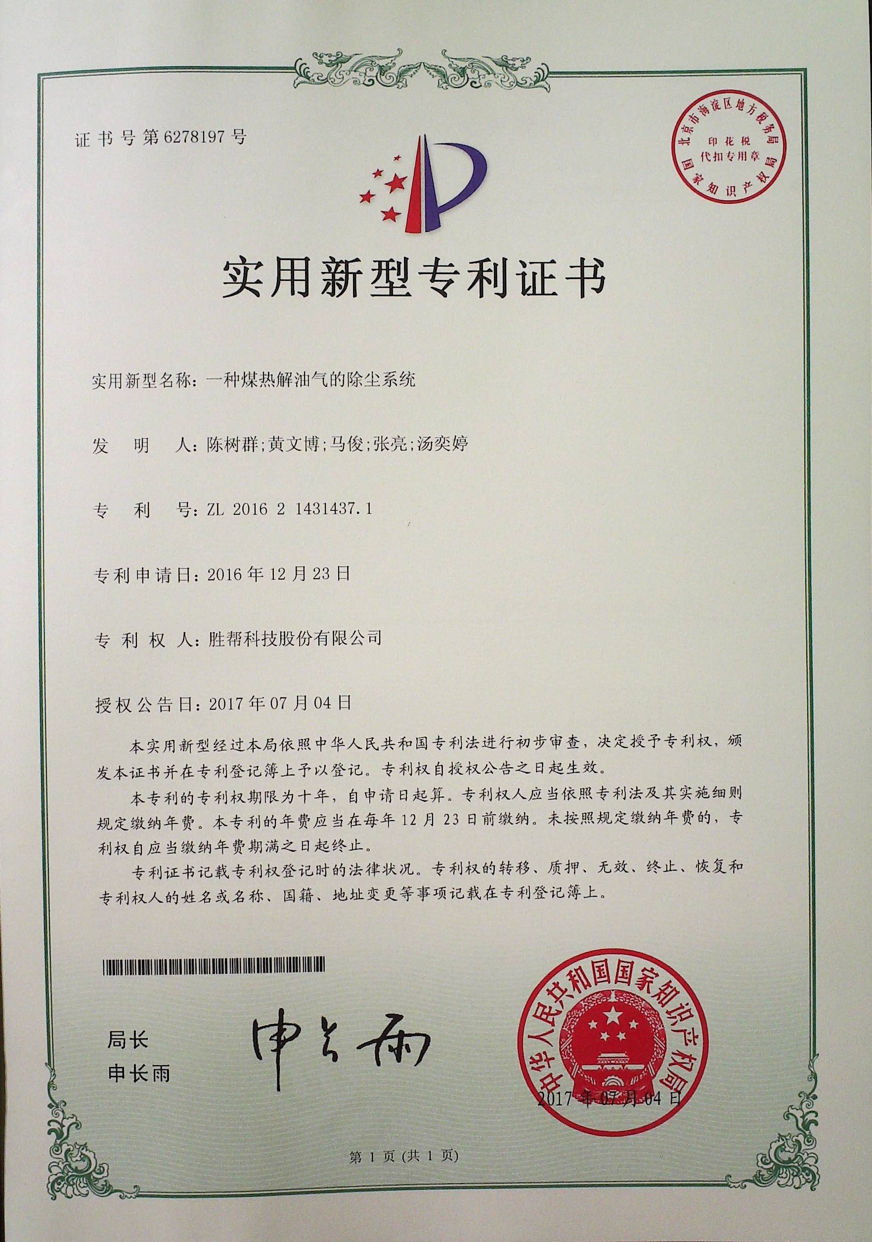 一種煤熱解油氣的除塵系統(tǒng)