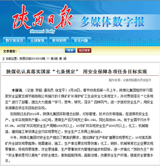 陜西日報(bào)2013年2月19日第三版 省國資委網(wǎng)站鏈接 http://www.sxgz.gov.cn/admin/pub_newsshow.asp?id=1005615&chid=100196