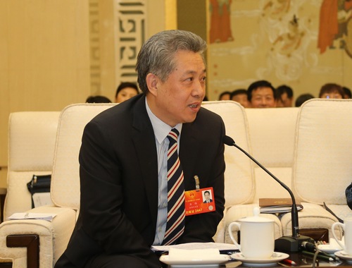 中共中央政治局常委、國務(wù)院副總理張德江參加陜西代表團(tuán)審議華煒代表:有發(fā)展就有辦法 有發(fā)展就有穩(wěn)定 有發(fā)展就有和諧 全國人大代表、陜煤化集團(tuán)董事長、黨委書記華煒在會上發(fā)言3月9日上午,中共中央政治局常委、國務(wù)院副總理張德江來到人民大會堂陜西廳,與陜西省代表團(tuán)親切交談,一同審議了《全國人大常委會工作報(bào)告》。全國人大代表、陜煤化集團(tuán)董事長、黨委書記華煒在會上發(fā)…