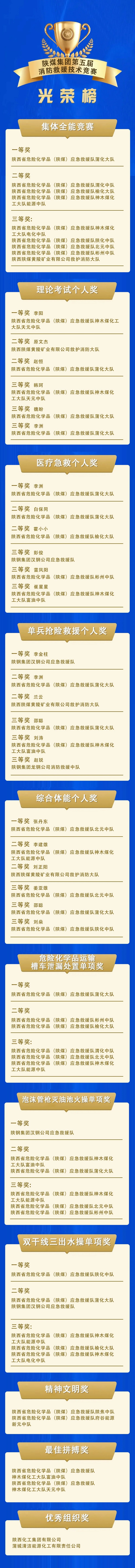 競(jìng)賽共產(chǎn)生27個(gè)集體獎(jiǎng),24個(gè)個(gè)人獎(jiǎng),6個(gè)精神文明獎(jiǎng)、最佳拼搏獎(jiǎng)、優(yōu)秀組織獎(jiǎng),以及5個(gè)優(yōu)秀指揮員、25個(gè)中省級(jí)優(yōu)秀裁判員、優(yōu)秀裁判員。渭南市消防救援支隊(duì)、陜煤集團(tuán)、陜西化工集團(tuán)等相關(guān)領(lǐng)導(dǎo)出席閉幕式并頒獎(jiǎng)。