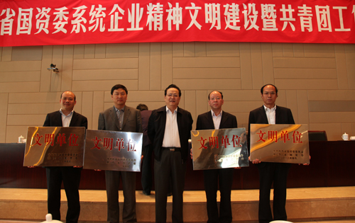 會(huì)后,集團(tuán)公司黨委副書記馬富元分別與獲得省國(guó)資委系統(tǒng)文明單位代表和十大杰出青年合影。