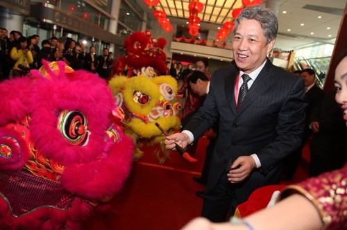 陜西煤業(yè)化工集團(tuán)公司董事長(zhǎng)、黨委書記、陜西煤業(yè)股份公司董事長(zhǎng)華煒為舞獅點(diǎn)睛