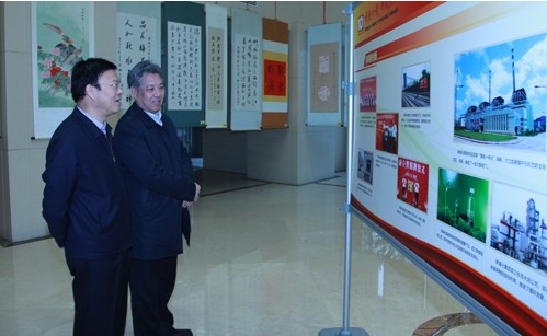 省國(guó)資委黨委書記孫安會(huì)與集團(tuán)公司黨委書記、董事長(zhǎng)華煒一同在集團(tuán)十周年圖片展區(qū)參觀