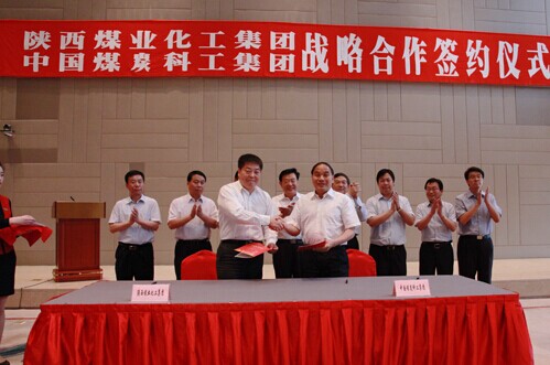 陜煤化集團總經(jīng)理嚴廣勞與中國煤炭科工集團總經(jīng)理吳德政代表雙方簽字