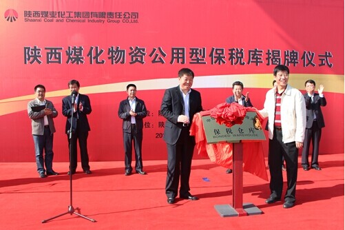陜煤化集團(tuán)總經(jīng)理嚴(yán)廣勞和西安海關(guān)關(guān)長(zhǎng)徐蔚葳共同為保稅庫(kù)揭牌
