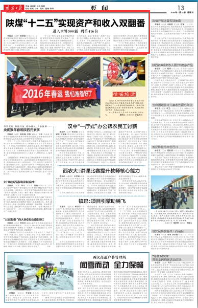 陜煤“十二五”實現(xiàn)資產(chǎn)和收入雙翻番